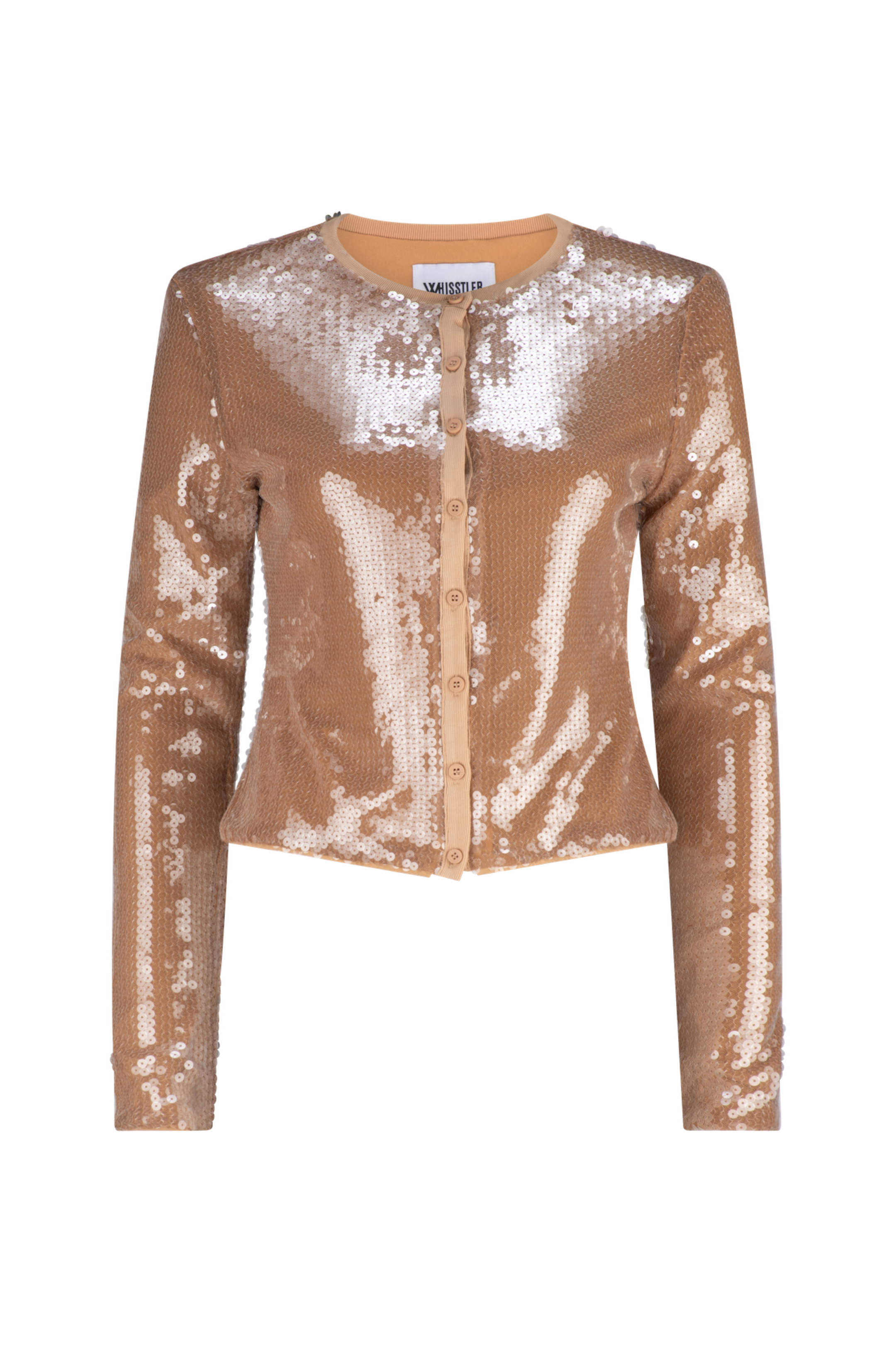 Natalia Sequin Cardigan Tailored from Signature Whisstler Nude Mesh And Embroidered With Clear Sequins For A Glossy, Wet Look. Finished with Ribbed Jersey Details and Jersey Lining. Pair With The Whisstler Alyssa Skirt For A Feminine Outfit.