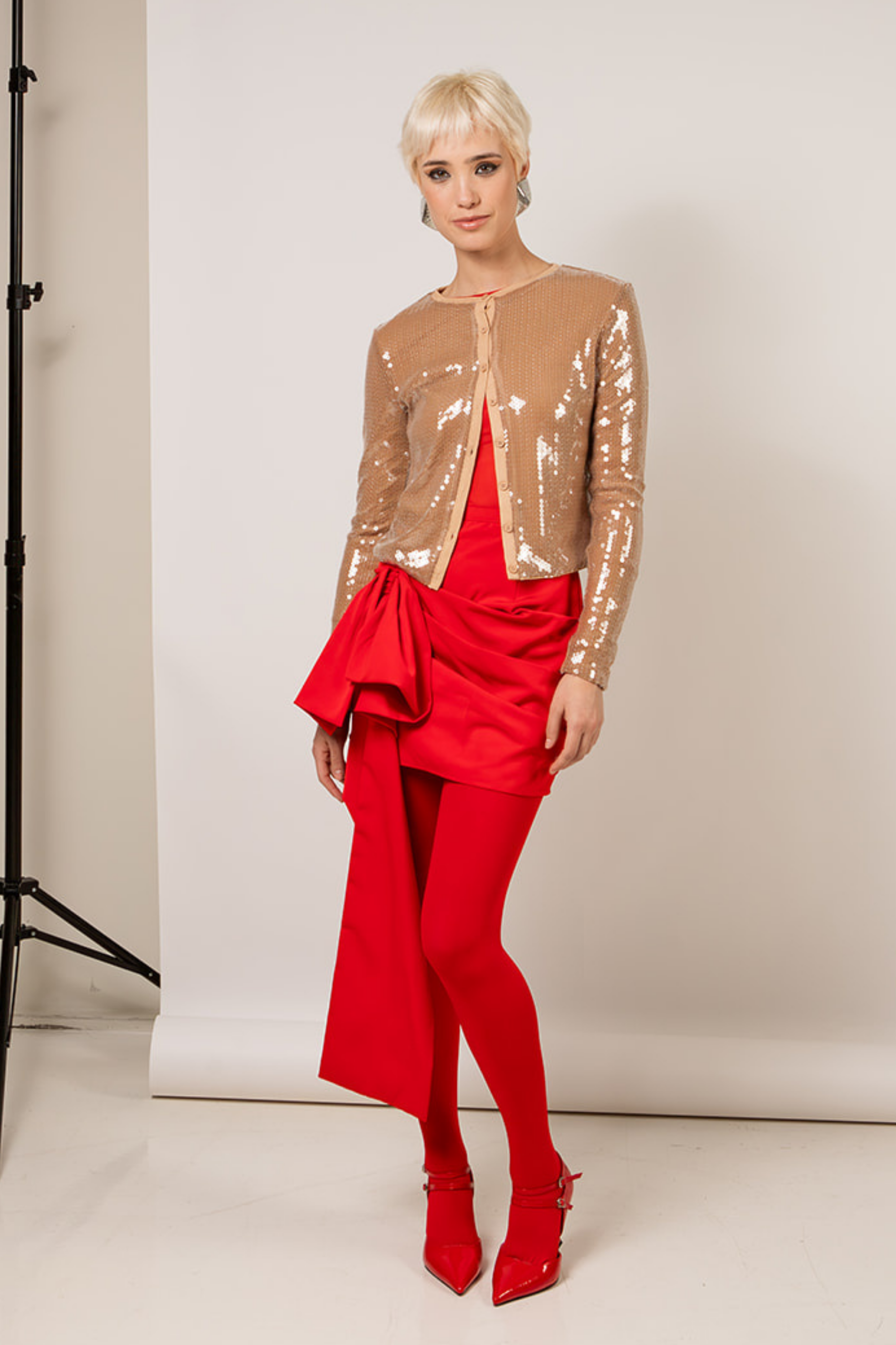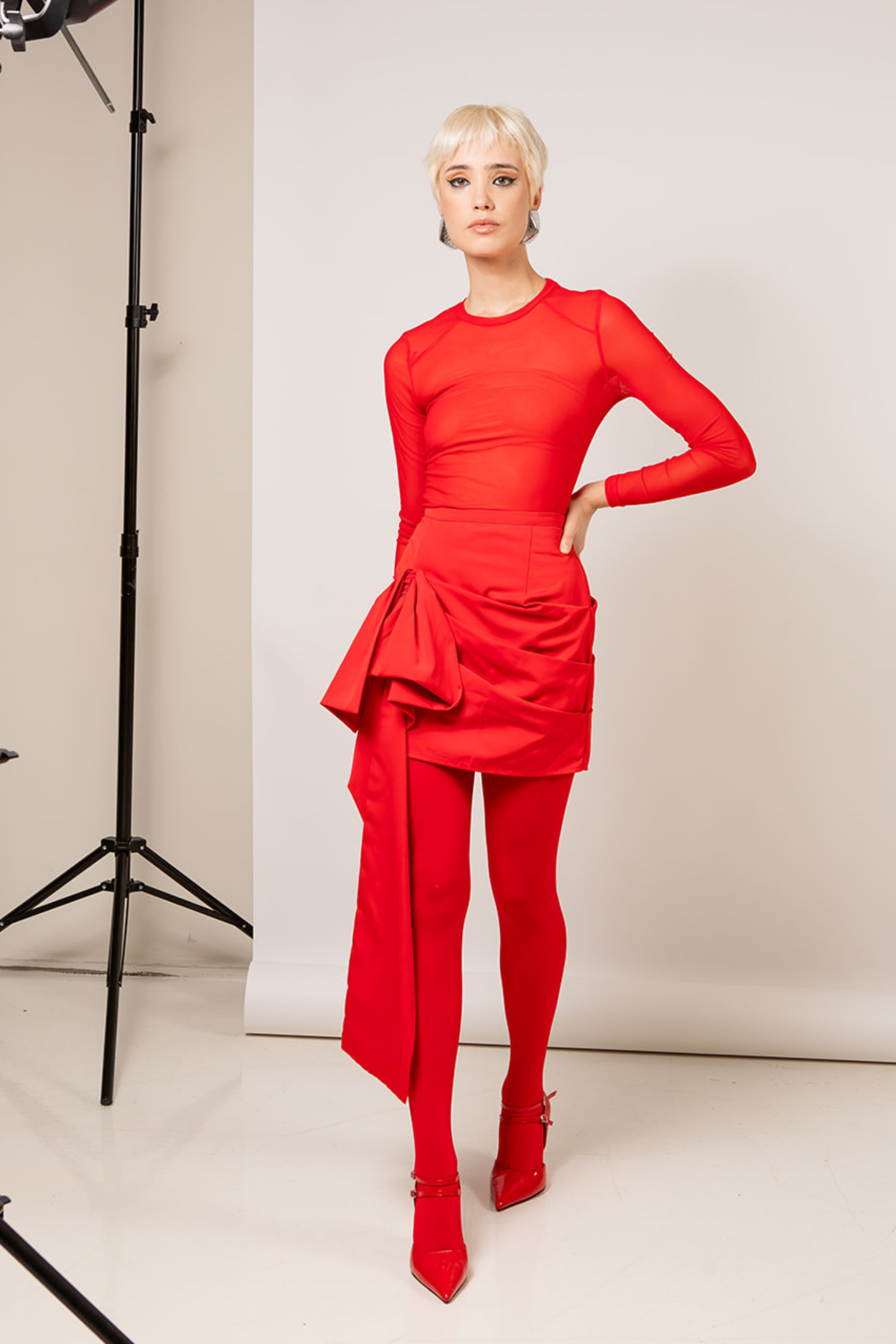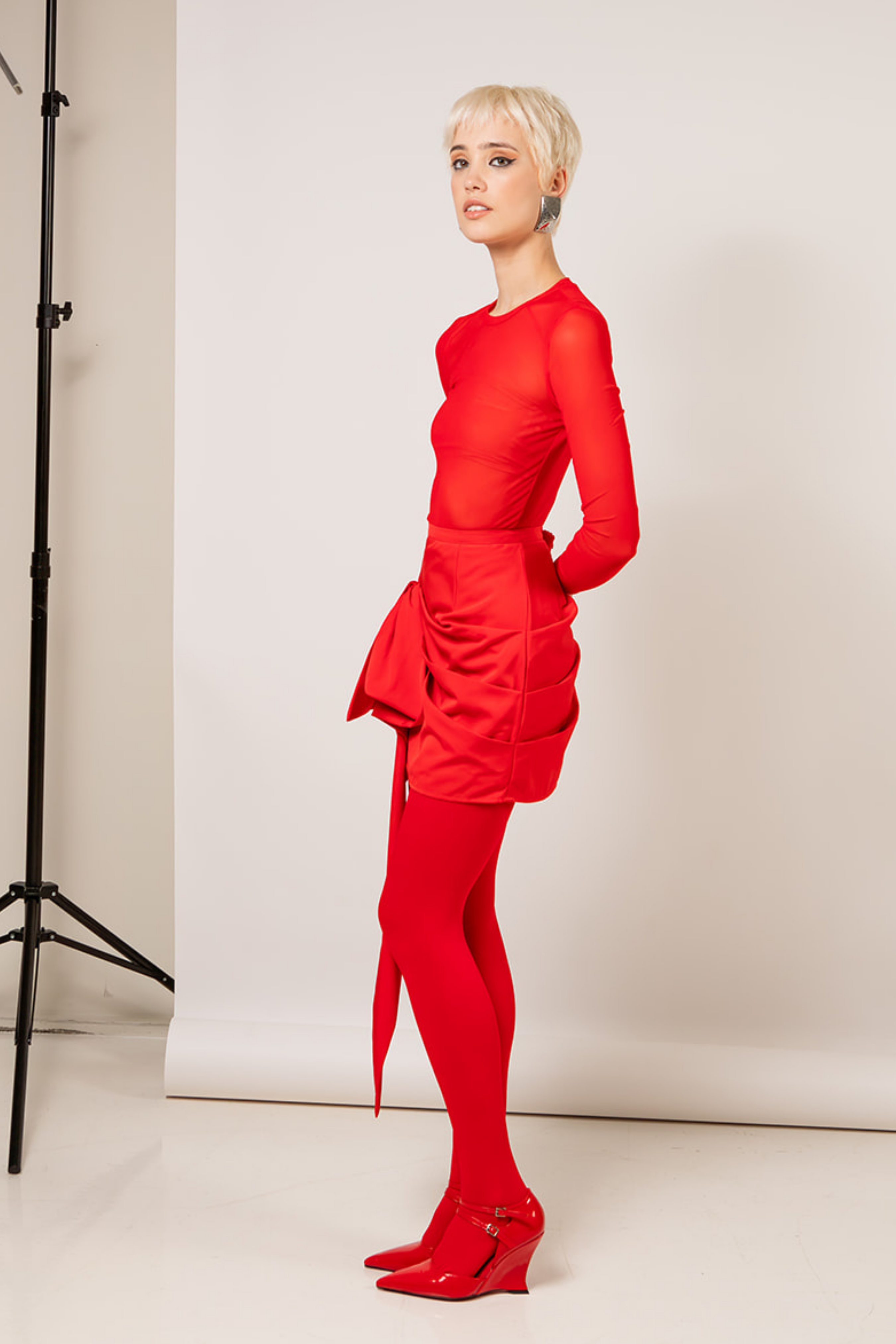 Alyssa Draped Skirt Tailored From Luxurious Twill Fabric in Whisstler Signature Red. Fabric Is Thoughtfully Draped Around The Body And Adorned With A Bow. Finished With Satin Lining
