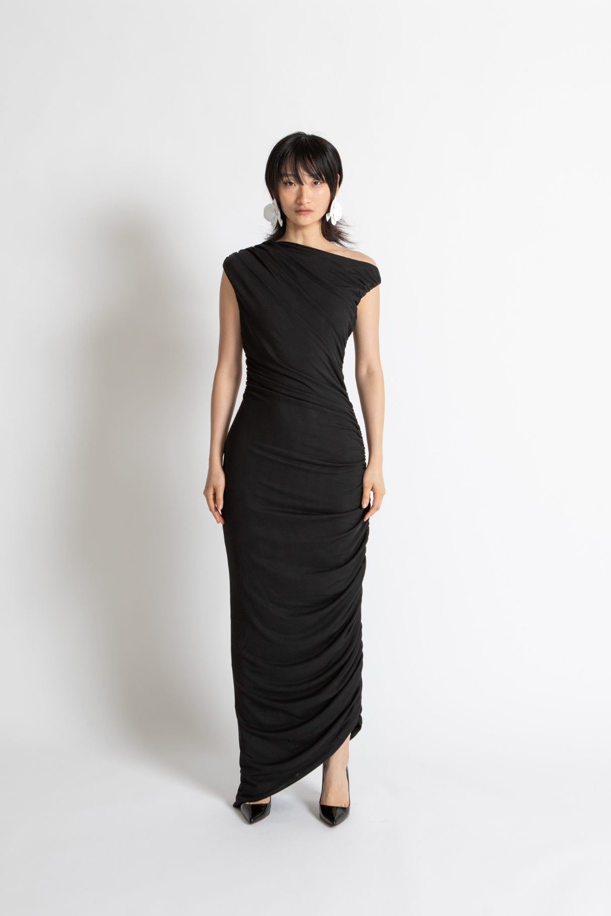 The Willow Dress is the epitome of Whisstler elegance. Draped in multiple layers of black mesh, and lined in stretch jersey, Willow has been designed to flatter all figures while keeping comfortable. Suitable for any formal occasion, the Willow Dress features an asymmetric neckline which thoughtfully drapes over one shoulder, and a unique asymmetric draped hem.